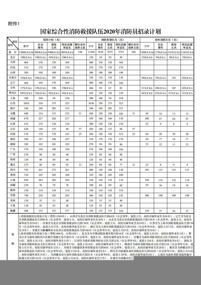 1.国家综合性消防救援队伍2020年消防员招录计划