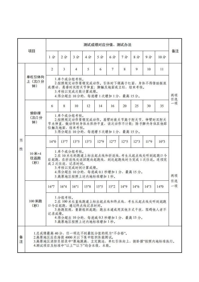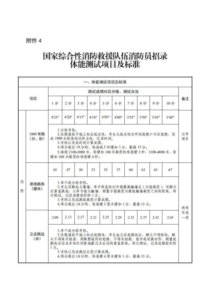 4.国家综合性消防救援队伍消防员招录体能测试、岗位适应性测试项目及标准