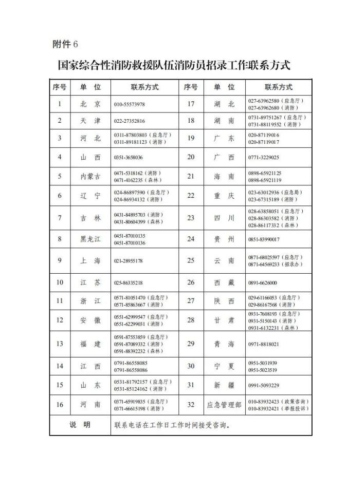 6.国家综合性消防救援队伍消防员招录工作联系方式