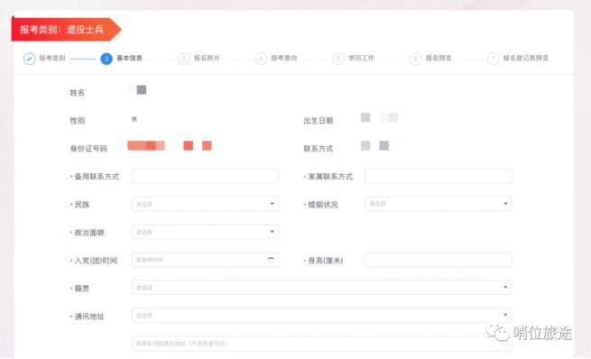 报名类型为“退役士兵”的招录对象需填写服役的军(兵)种、入伍时间、退役时间(具体到年月),系统自动计算服役年限,同时还须上传退伍证带有个人照片和信息的正面照。军(兵)种分为解放军和武警部队、原公安消防部队、原武警森林部队。