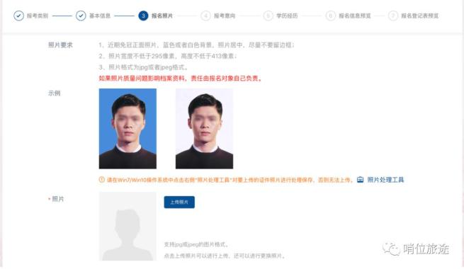 招录对象需上传本人证件照片,为本人近期1寸正面免冠彩色证件照片(须为蓝色或白单色背景,295×413像素,JPG或JPEG格式),照片需经系统工具处理符合要求后方可上传。