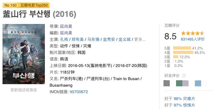 而第一部的评分是8.5,位居豆瓣丧尸题材口碑的top1。