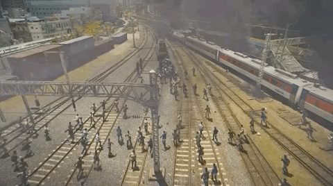 为了救回受困的老幼妇孺,主角一行必须利用丧尸在黑暗中失明这一特点,在列车过隧道时,穿越丧尸群。