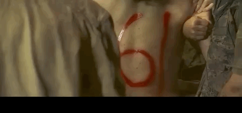 电影最后,孕妇和小孩遇见了救援的军队,后者在小孩的歌声中没有开枪。