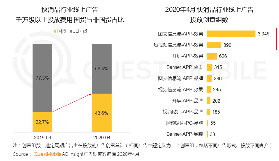 I. 国货愈发重视线上广告所带来的推广效果,此外,短视频广告已成快消品典型国货品牌主流的投放形式