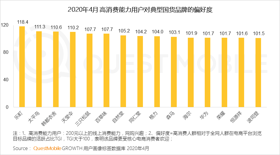 1、整体上,国产品牌进入掘金时代,用户对知名国产品牌的偏好程度超出平均水平
