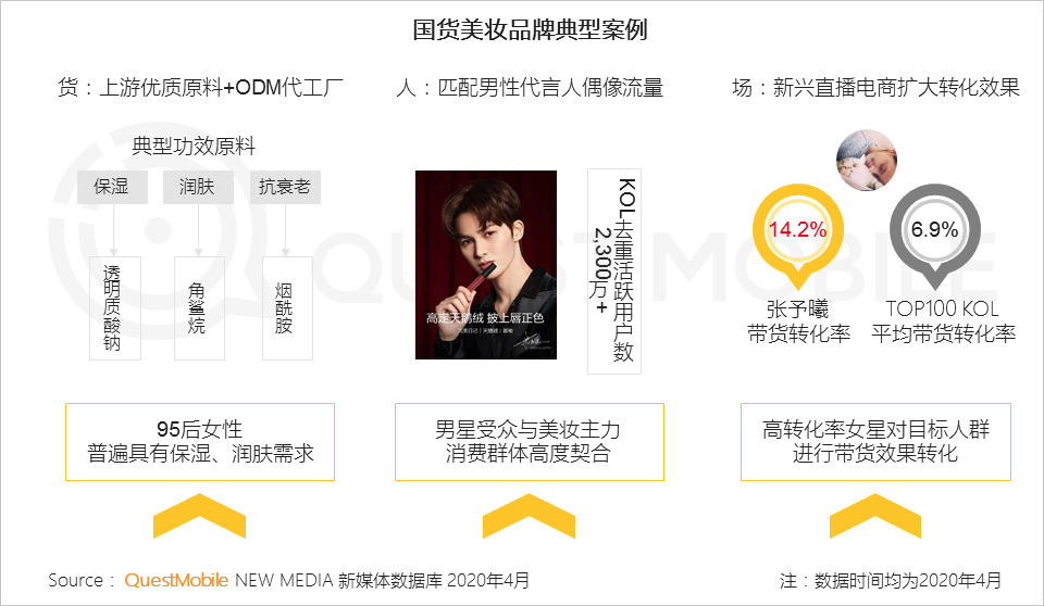 5、国货在美妆行业中崛起:部分新锐国货美妆品牌,从诞生起便蕴含热点概念,即“ODM+私域流量+内容营销”,实现零售本质人货场的统一