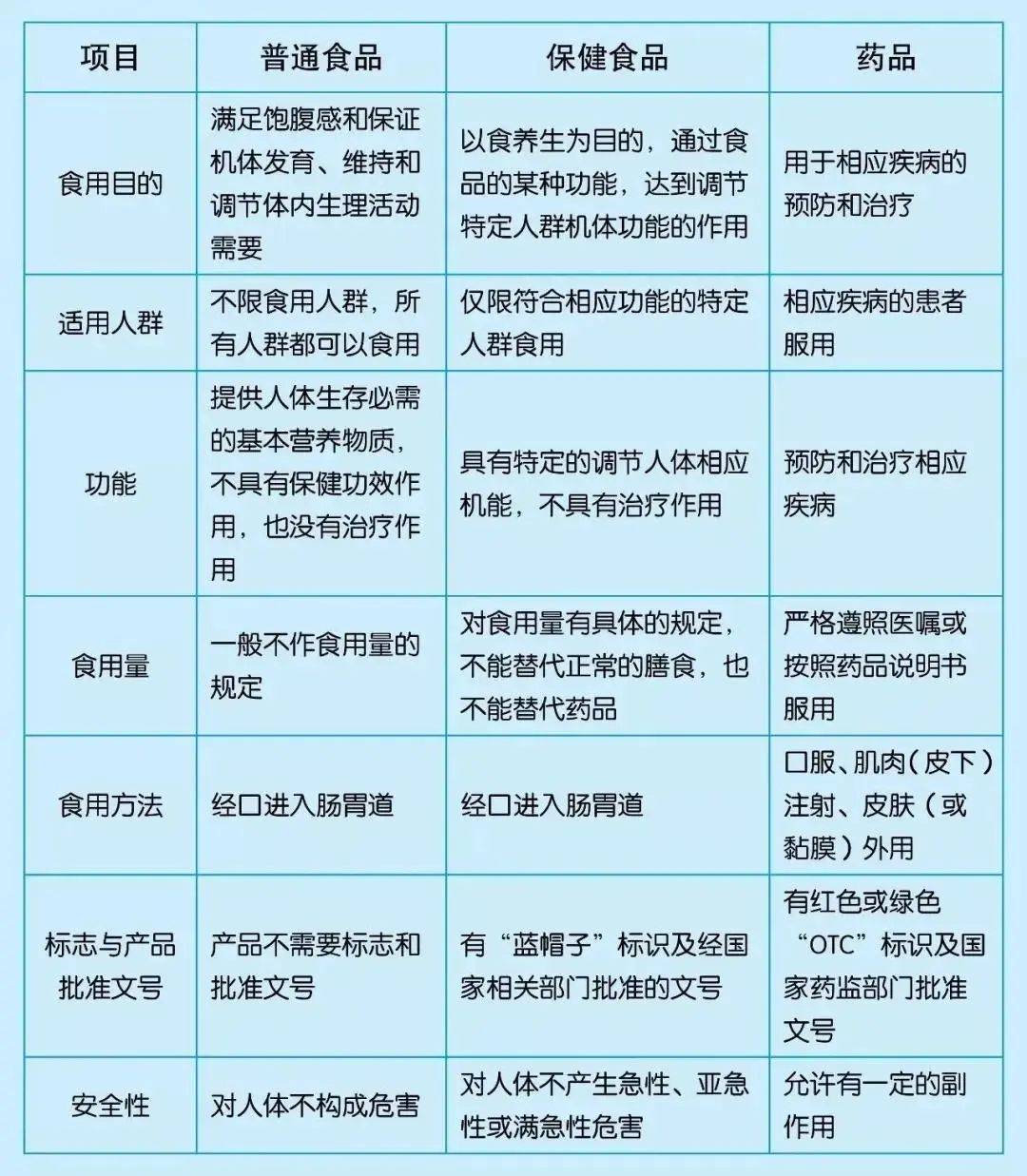 原标题:《【食品安全】普通食品、保健食品、保健品、药品之间有什么区别?》