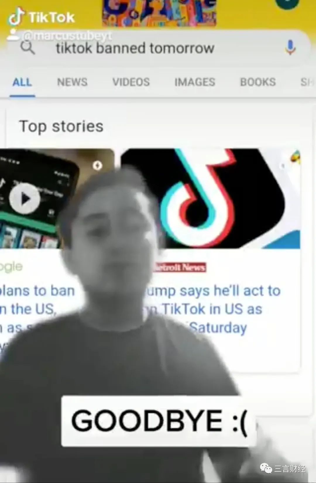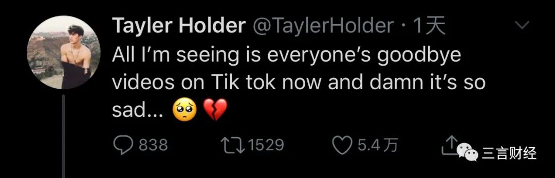 有网友表示自己看了很多TikTok告别视频感到很感伤。