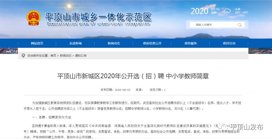 原标题:《平顶山市新城区 2020年公开选(招)聘 中小学教师简章》