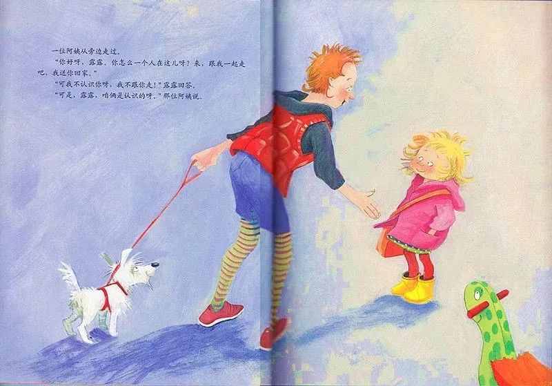“我不认识你,我不跟你走!”露露回答,“而且妈妈说了,我得等着!”