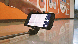 自拍杆的使用门槛很低,夹上手机就可以,自带的防滑设计让拍摄相对稳定。