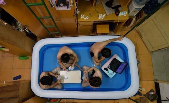 有一段时间,有才的学生甚至在宿舍里摆上塑料泳池,在水中打牌、玩游戏,以此躲过武汉炎热的夏天。