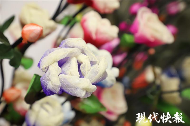 " 制作干花非常简单,几乎人人都能做。" 魏良余告诉现代快报记者,用几片广玉兰叶脉,经过翻、叠、折等几个动作后,就成了干花花苞。