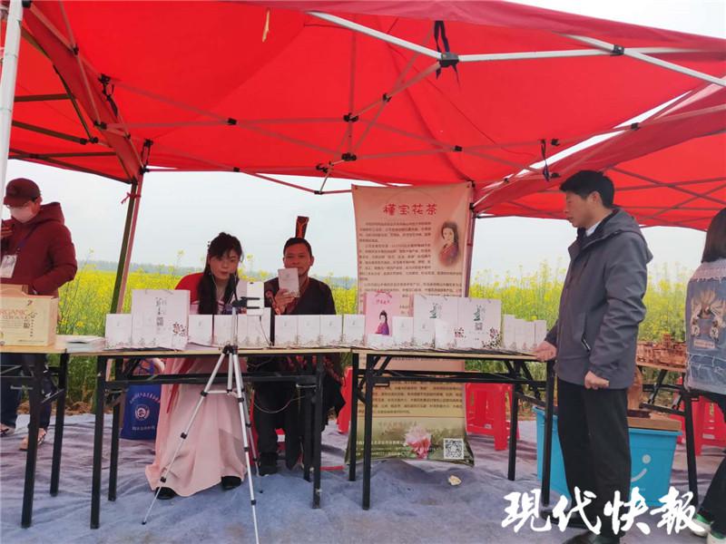 魏良余(右一)在木槿花茶摊位。受访者供图
