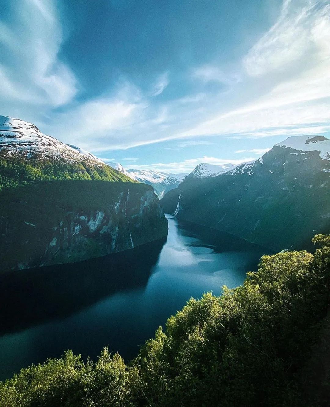 盖朗厄尔峡湾(Geirangerfjord)也被列入联合国教科文组织列入世界遗产名录,它以曲折的形状和众多落差巨大的瀑布而著称。