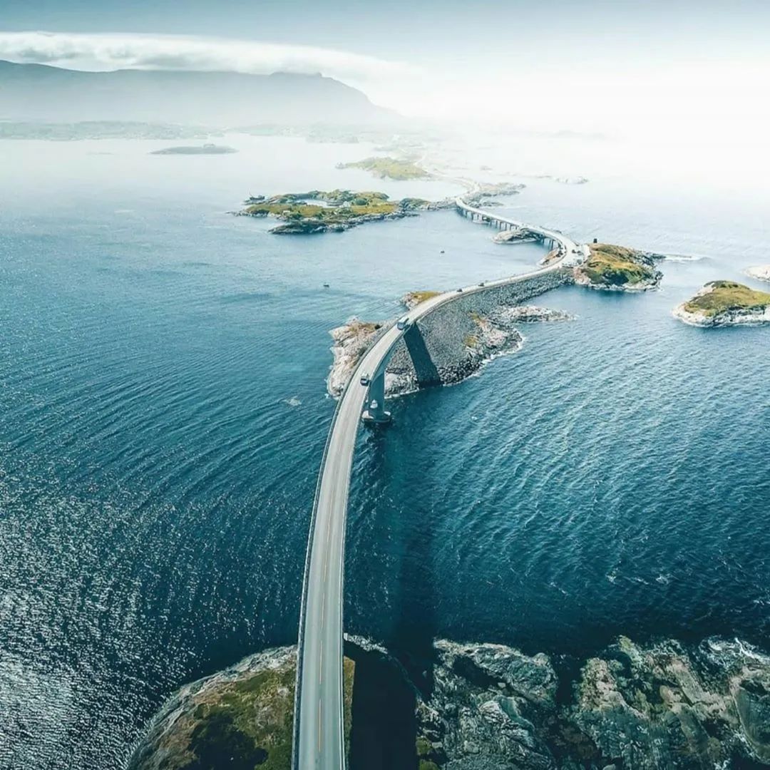 大西洋之路全长36公里,这条公路修筑在海边,桥梁和堤道将一座座岛屿连接在一起。
