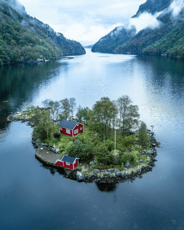 这座小岛,位于挪威罗加兰郡的洛夫拉峡湾(Lovrafjorden in Rogaland)的中央,仿若世外桃源一样地理位置吸引着不少人想去一探究竟。
