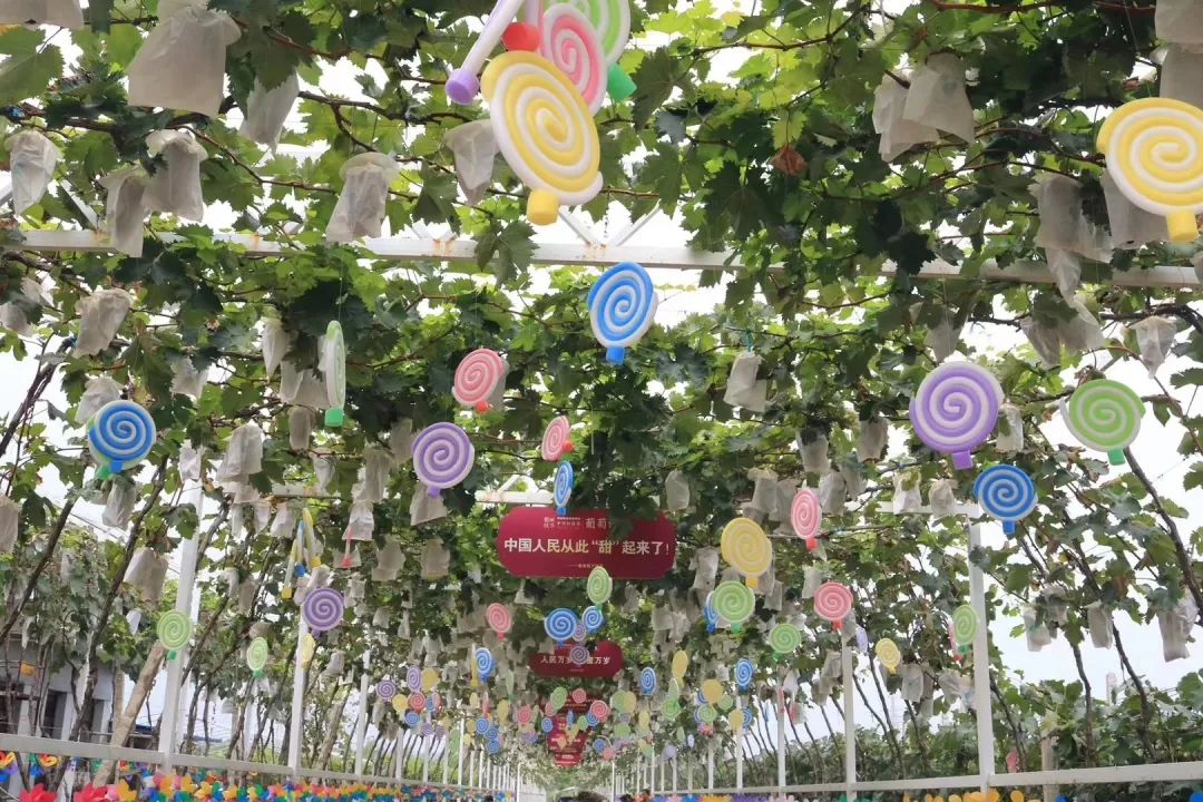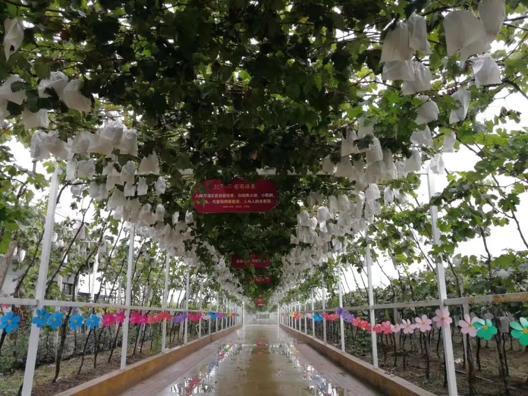 园区葡萄500亩,年产葡萄150吨。40%产品采摘自销,其他远销北上广,同时获得周边城市认可。每年上市时间为8月中旬至10月底。