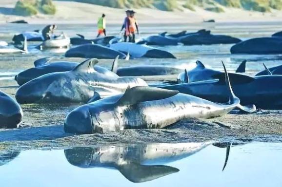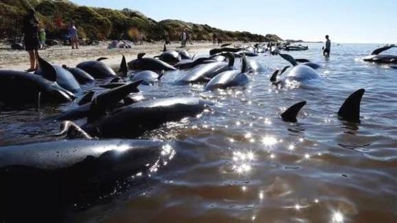 2018年,新西兰的查塔姆岛,90多头鲸鱼搁浅死亡。