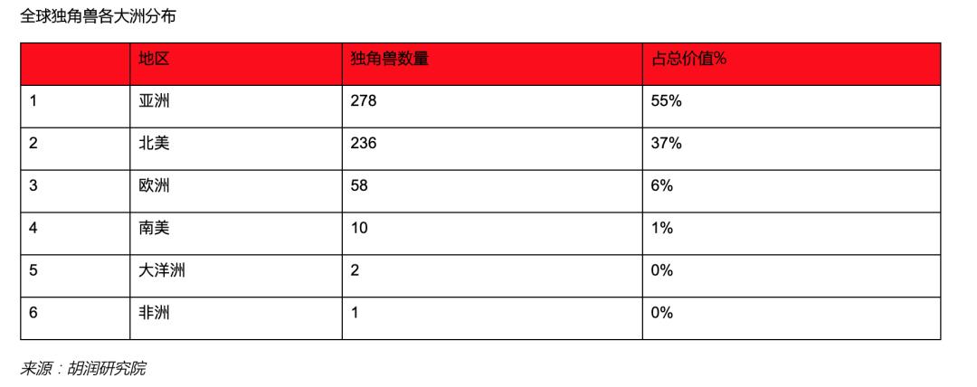 亚洲拥有全球一半的独角兽,非洲只有一家。
