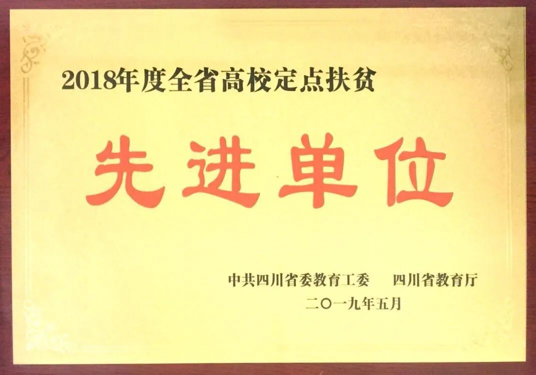学院先后被评为“四川省脱贫攻坚‘五个一’帮扶先进集体”“四川省高校定点扶贫先进单位”“广元市脱贫攻坚先进集体”,党委组织部(扶贫办)被评为“四川省脱贫攻坚先进集体”,1个扶贫案例入选教育部高校精准扶贫精准脱贫典型案例,2篇扶贫理论文章分获精准扶贫工作论述征文二、三等奖,“檬芽助学”项目被评为旺苍县10件“满意的民生实事”之一。