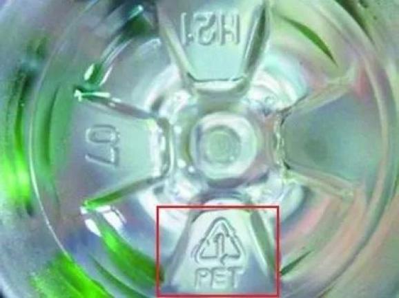 小编告诉大家,我们现在最常见的塑料瓶装水,瓶底都会印有三个小箭头组成的三角形,并标有“PET”字样。