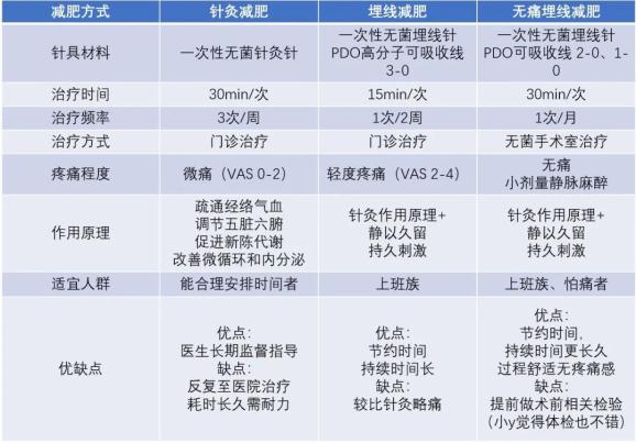 针灸减肥、埋线减肥与无痛埋线减肥之间又有何区别?