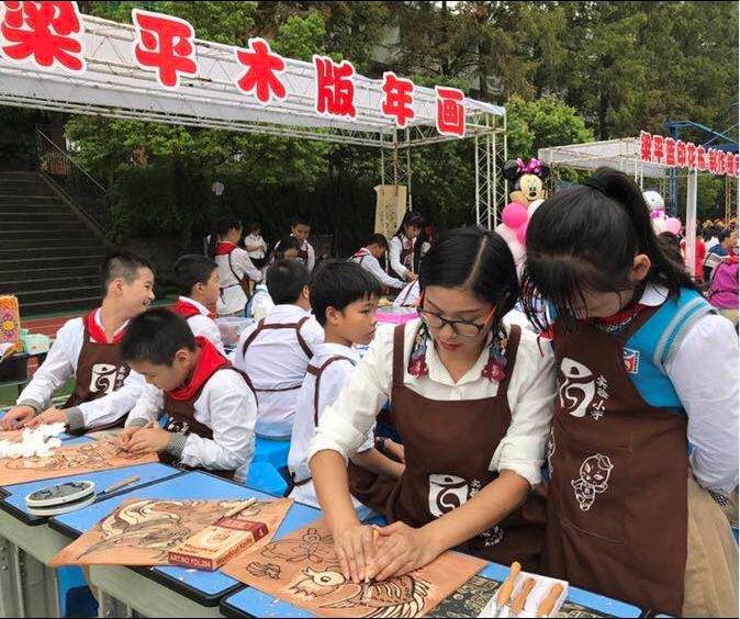 原标题:《双晒面孔丨梁平木版年画走进“紫荆杯”,600学生“绘”山水“晒”重庆》