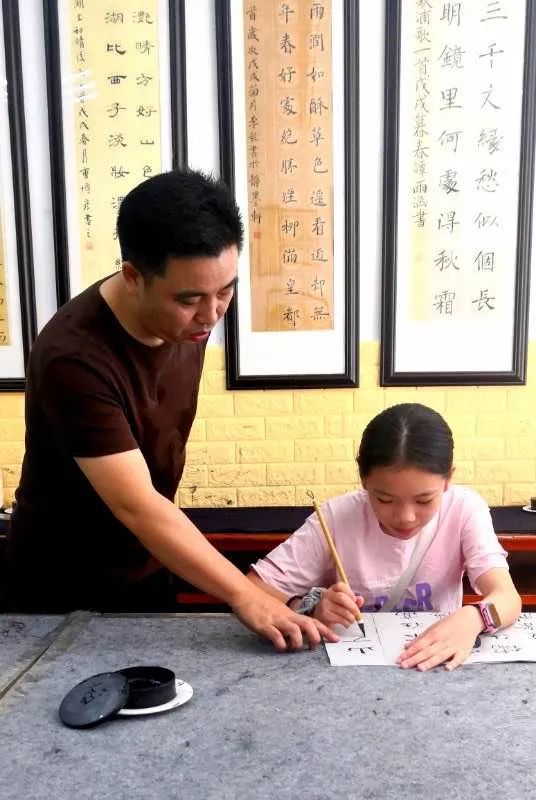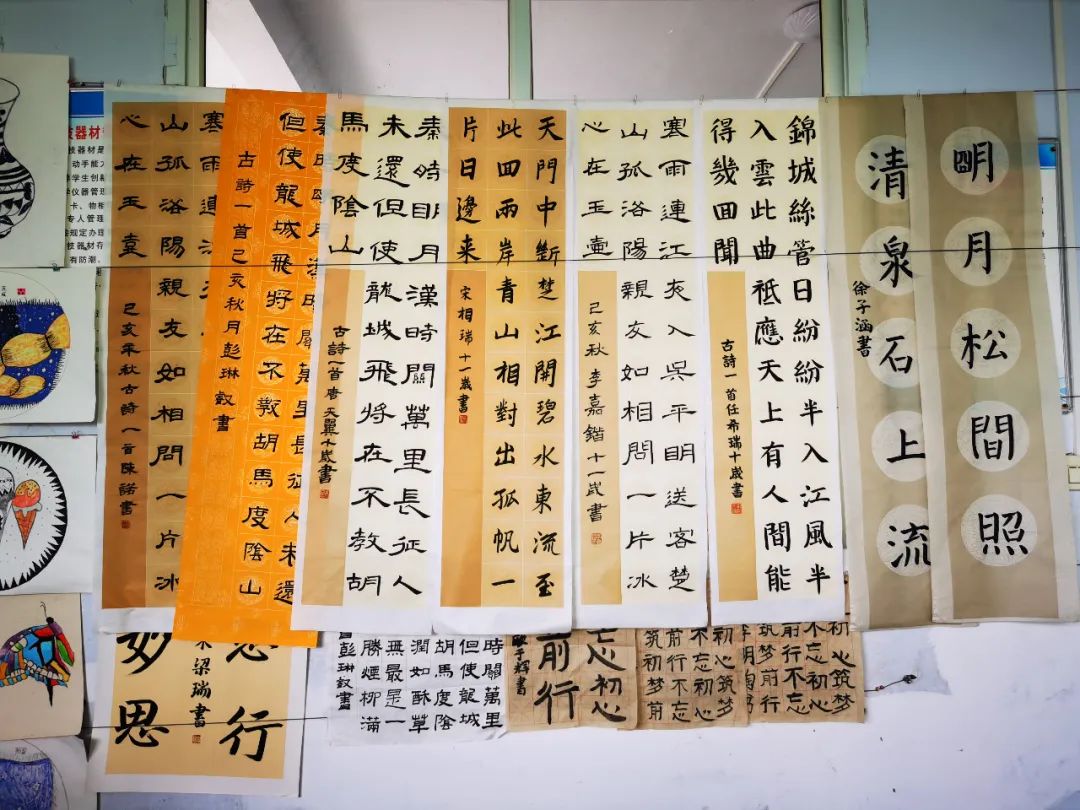 在选主题的环节,老师们让学生留心观察身边的细节,老旧小区改造、农村的新面貌、卫生习惯的改变、餐桌文明、疫情中的故事等都在孩子们的创作主题中。“重要的是通过书法、绘画等形式,提升青少年对传统文化的认同感,让学生接受更多艺术熏陶,关注生活、关注社会,并在作品中展现家乡的风土人情。”