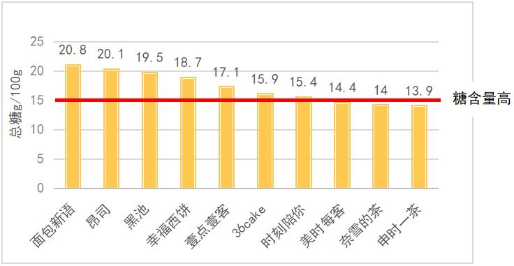 按照每人每次摄入一份蛋糕(115g,约2磅蛋糕的八分之一)算出10款蛋糕总糖平均值为19.5g。如果每人每天摄入1.5份蛋糕,糖摄入量便超出25g。