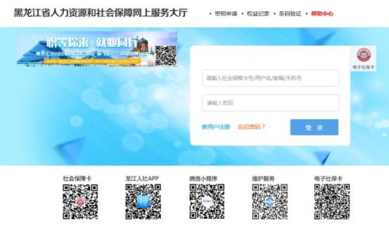 第一步:除哈尔滨市的12个市地、森工、农垦参保失业人员,登录黑龙江省人力资源和社会保障网上服务大厅首页: