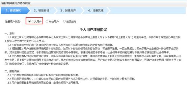 ,网上服务大厅个人用户网页注册与龙江人社APP手机端用户注册的账号为同一个。具体操作如下: