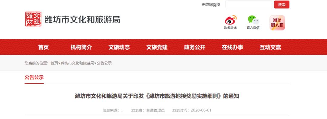 原标题:《“真金白银”!潍坊出台旅游地接奖励实施细则!》