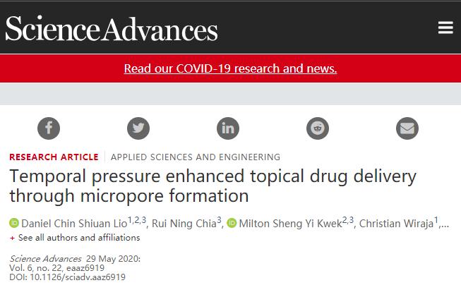 原标题:《【Science子刊】短压皮肤即可输送药物!新加坡科学家开发无痛新方法!》