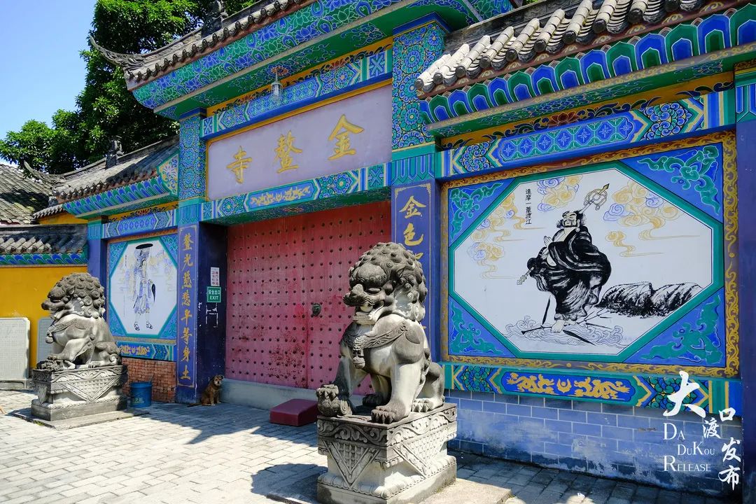 后来,从南边来了一位身穿白衣,文士打扮的年轻男子,为观音菩萨所化,降服了巨鳌,一道金光闪过,观音和身下的巨鳌顿时化作了今天的金鳌山,立于江隈,将原本四下奔流的洪水导入了长江河道。为了纪念观音菩萨降伏巨鳌,故而后人将观音钓巨鳌的拦江半岛命名为“钓鱼嘴”,将观音降伏巨鳌的江段称为“小南海”。后来,金鳌山上建了一座古庙,以山为名,是为金鳌寺,这座古寺也充满了传奇的色彩。传