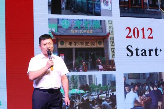陕西秦吼食品科技有限公司董事长刘杨先生做《5分钟售出8万份羊肉泡馍背后的故事》的主旨演讲。