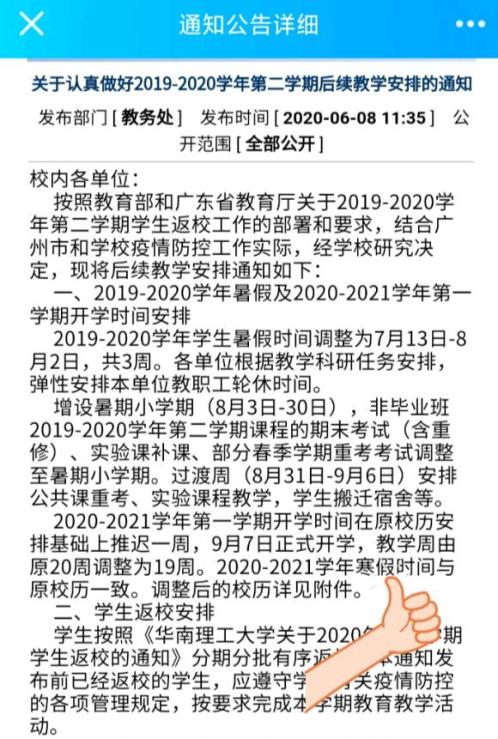 7月11日-8月28日为暑假时间,天河校区2019级学生8月29-30日返校搬迁到白云校区后注册;白云校区2018、2019级学生8月29-30日报到注册;2020级新生10月10日-11日报到。