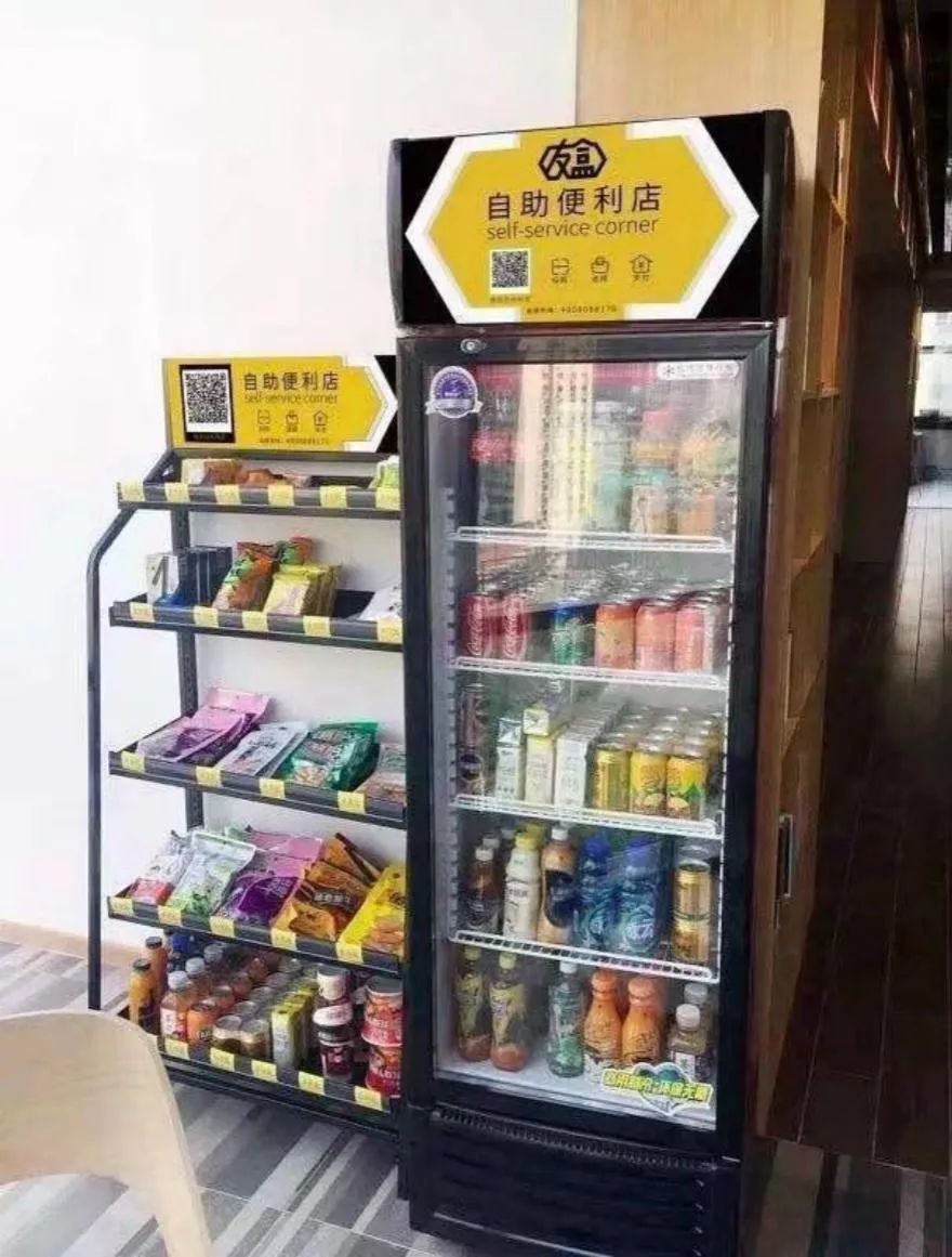 无人货架则更为简单粗暴,平台将堆满零食的货架放置在写字楼办公室中,白领全程自主取货付款,平台定期补货。