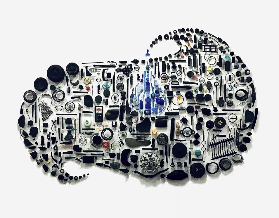 用艺术家的话说,塑料是人类世、首都新世的地质标志,更深刻的说法是,直立人时代:“孤独的时代”(E.O.威尔逊)。塑料的生产、传播和无情的来世促成了地球目前的第六次大灭绝。Swerve(急转)艺术作品包含了500多块漂泊的海洋塑料,它们是从世界各地的海滩和海洞中费力地取出的。它的标题预示着一场即将到来的气候危机,2019年的飓风Michael(迈克尔)在登陆南卡罗来纳州默特尔海滩的艺术博物馆前最后一刻突然转向近海,这件作品就是在那里安装的。