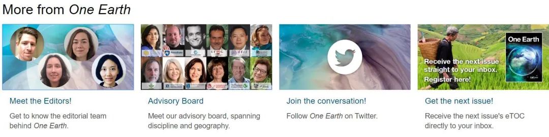 作为Cell Press细胞出版社旗下地球科学类的首本期刊,One Earth的创刊标志着我们正式涉足环境科学研究。作为Cell的姊妹刊,One Earth致力于发布顶级原创研究,并通过专业的编辑团队提供公平、快速和严格的同行评审流程(长按识别下图中的二维码访问One Earth期刊主页,了解更多详情)。