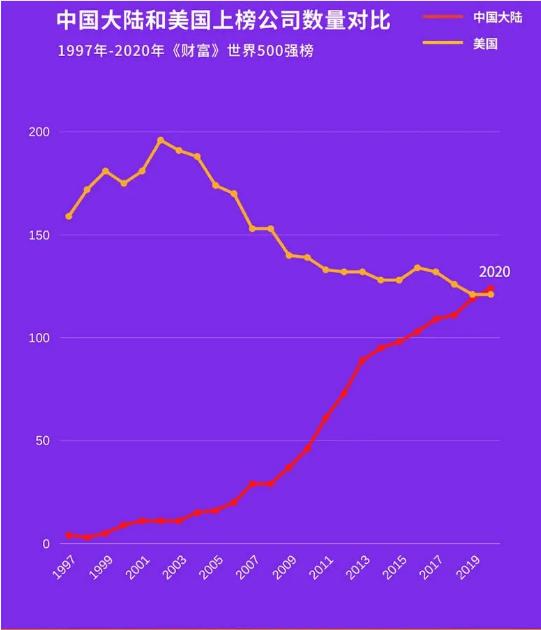 不仅上榜500强的企业数超过美国,中国上榜互联网公司的数量也超过美国!