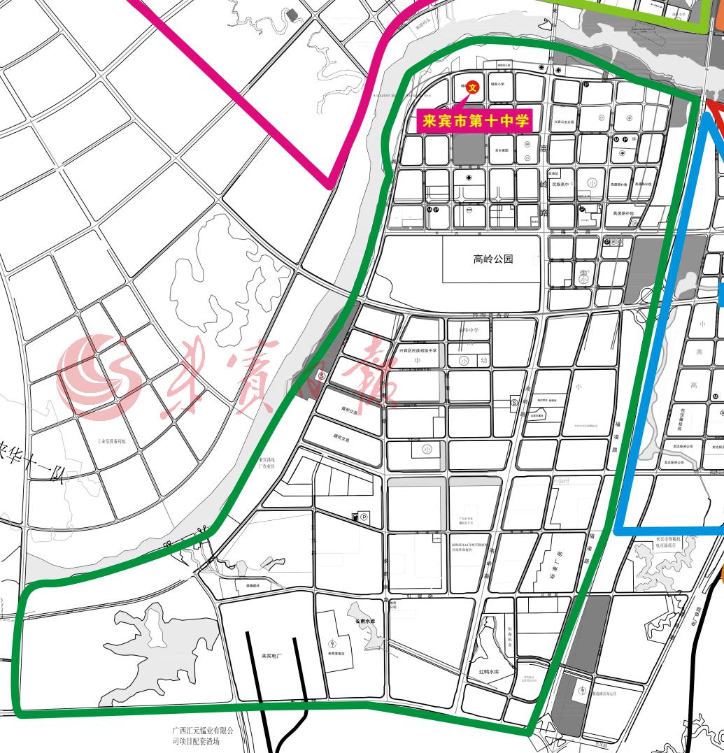 (一)沿磨东大桥→文化西路→红水河大道→长梅路→电厂圆盘→来宾一桥这一路线以北至红水河南岸的区域。