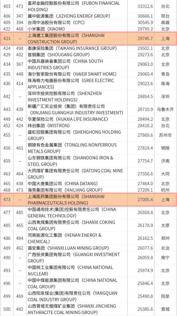 多年没有明显变动的世界500强上海企业名单,今年增加了两张新面孔,均来自浦东。其一是建筑领域的上海建工集团,排名第423位;其二是上海医药集团,排名472位。一座城市,一年间新增两家世界500强实属不易。今年中国新上榜企业总共仅8家。