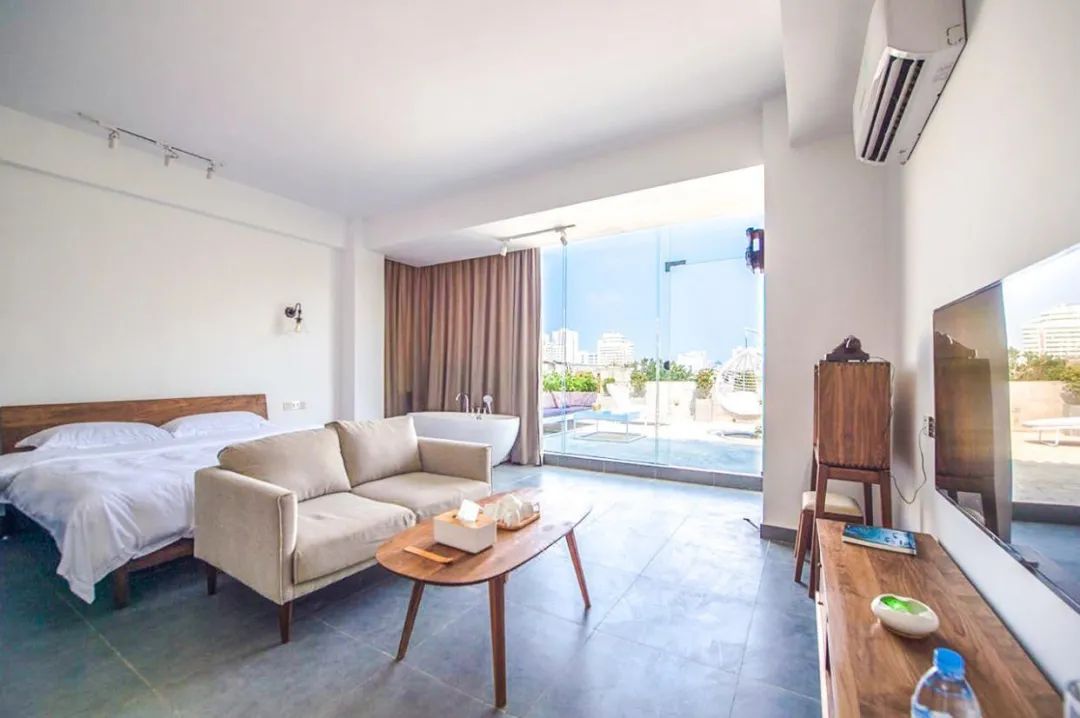 海口巷遇精品温泉民宿位于海甸岛五东路的福甸路上,海甸岛有很多海口有名的小吃,在这可以做一回地道的海口人,很是悠哉。一进屋就能感受到这家民宿的日系装修风格,简约、舒适、居家。