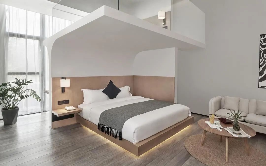 有客民宿里绝佳的采光设计,让整个空间与自然相连。随处可见的绿植令人心旷神怡,从窗户上看出去仿佛就像挂在墙上的一副风景画,极简的设计风格与繁琐生活方式形成对比,在给客人带来新体验的同时也能感受到一种家的味道。