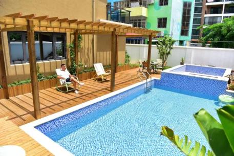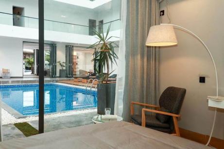 海口朴宿泳池设计民宿位于美兰国际机场旁美兰墟振兴路,毗邻东线环岛高速、环岛高铁美兰站等交通要道,位置优越,周围生活配套齐全,出行十分便利。整个民宿以纯白色的ins风格为主,特别适合拍照。