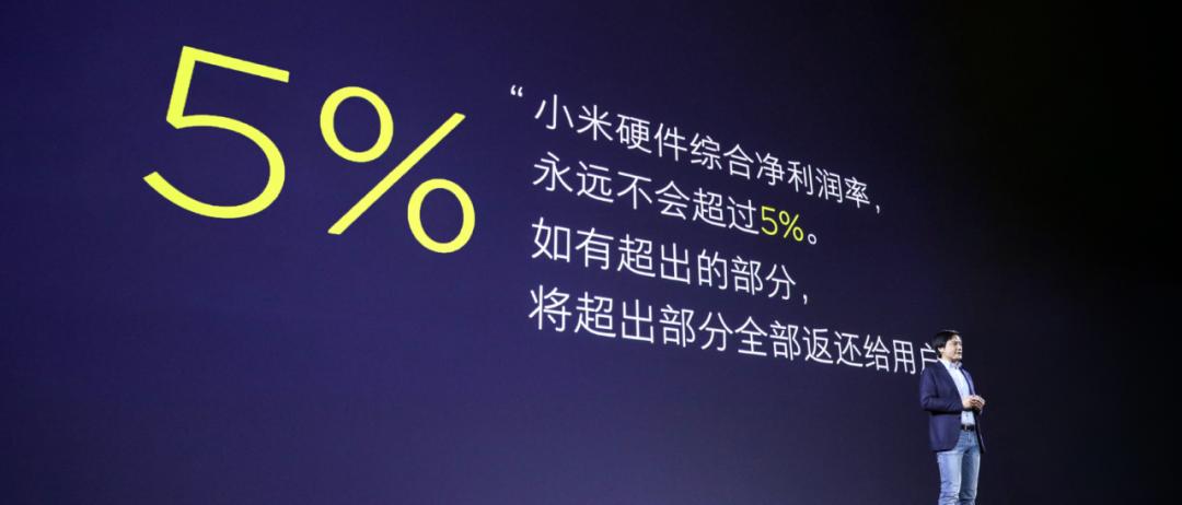 小米IPO前夕,2018年4月25日,我在武汉大学办了一场发布会,宣布了一项董事会决议:小米硬件综合净利率永远不超过5%,如有超出的部分,将超出部分全部返还给用户。