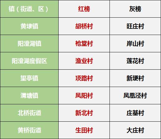 *黄桥街道方浜村、北庄村纳入社区红灰榜考核,漕湖街道卫星村、下堡村纳入社区红灰榜考核