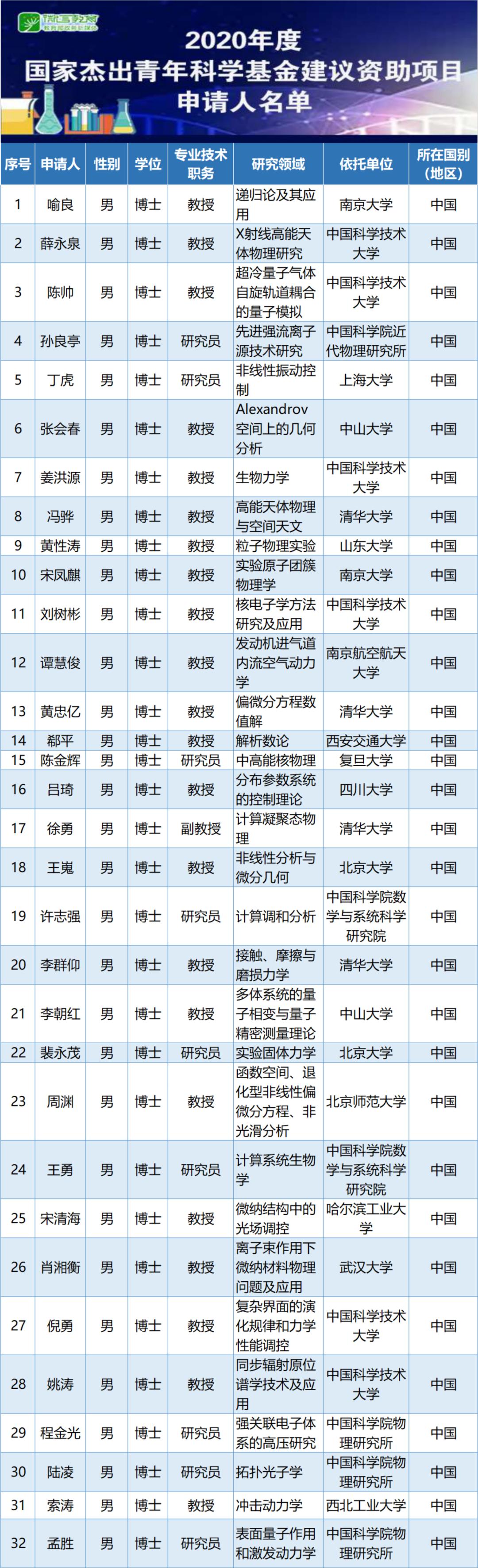原标题:《300人入选!2020国家杰出青年科学基金建议资助项目申请人名单公布》